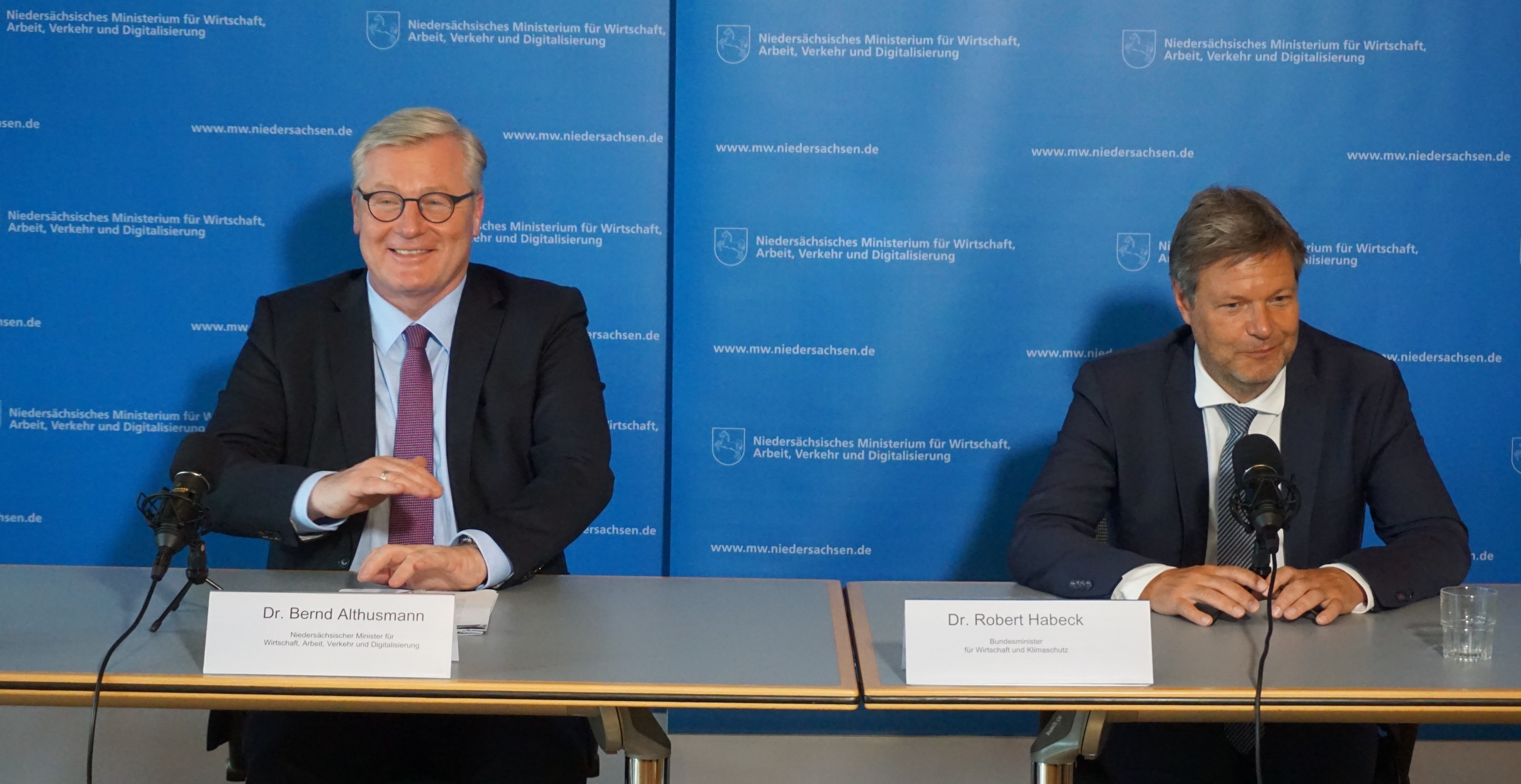 Niedersachsens Wirtschaftsminister Dr. Bernd Althusmann hat Bundeswirtschaftsminister Robert Habeck am Mittwoch, 4. Mai, im Niedersächsischen Wirtschaftsministerium empfangen. Für Minister Habeck war es ein „Antrittsbesuch“ im Zuge seiner Reise durch die Bundesländer.