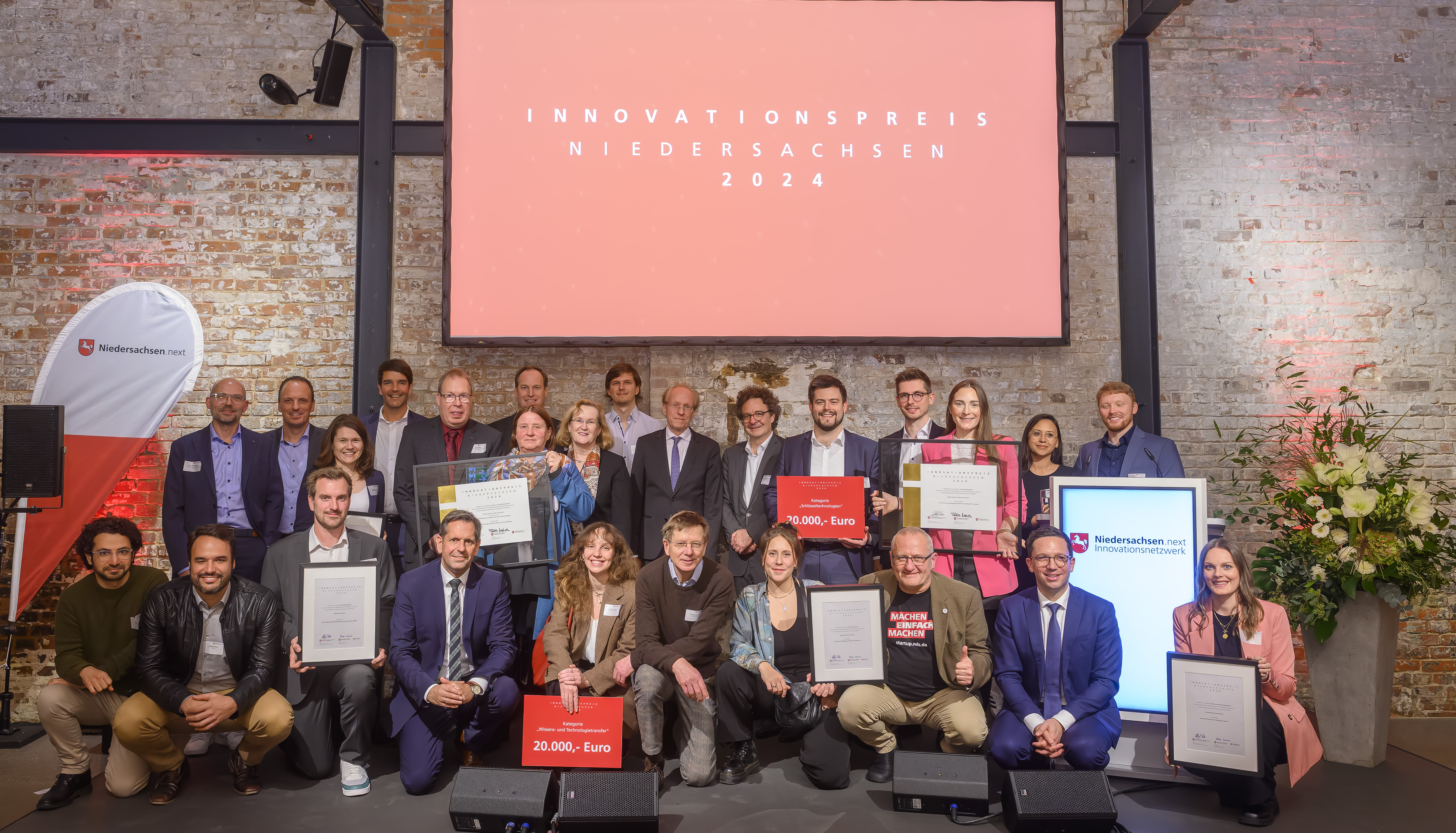 Bei der feierlichen Verleihung im Helmkehof in Hannover haben die Preisträgerinnen und Preisträger jeweils 20.000 Euro Preisgeld für ihr Projekt erhalten. Sie und die jeweils Zweit- und Drittplatzierten bekommen einen professionellen Imagefilm, mit dem sie für ihre Innovation werben können.