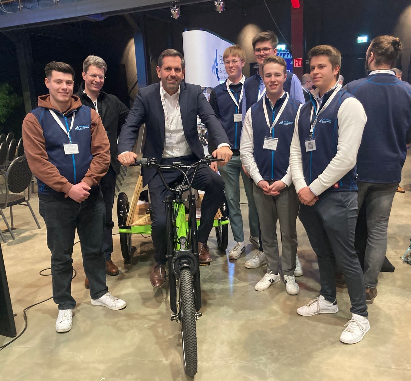 Besonderes Augenmerk galt auch den künftigen Gründerinnen und Gründern: Angehende Fahrzeugtechnikerinnen und -techniker der Berufsschule Burgdorf zeigten ihren Prototyp für ein Lastenfahrrad, das mit Wasserstoff angetrieben wird, inklusive Marktanalyse und Zukunftskonzept für eine Rundumlösung mit Erzeugung von Wasserstoff und Betankung. Im Anschluss präsentierten mehrere etablierte Unternehmen ihren Erfolg, z.B. mit in Form und Funktion angepassten Klebefolien, neuen Dichtungen für die E-Mobilität, Ladesäulen und dazugehöriges Management für Unternehmensflotten oder einem Audiosystem, das im Auto eine Klangqualität wie im Kino bietet.