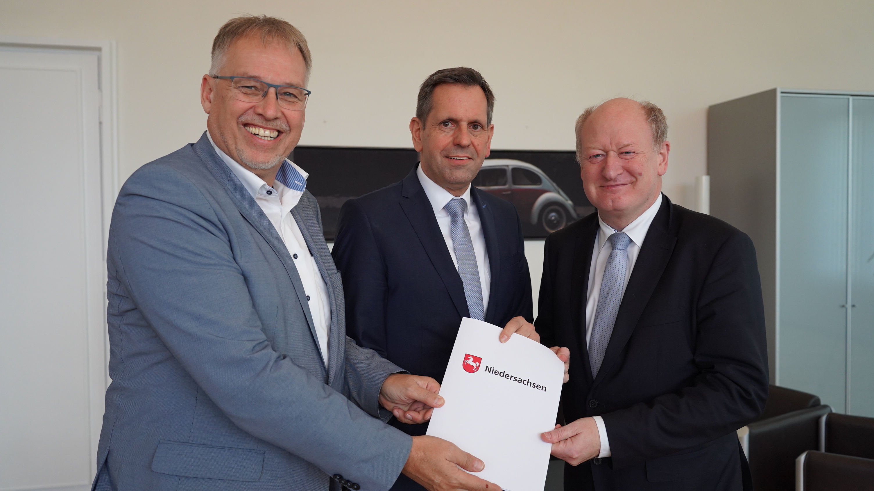 Ein weiterer großer Schritt auf dem Weg zur SPNV-Reaktivierung der grenzüberschreitenden Bahnstrecke von Neuenhaus nach Coevorden: Verkehrsminister Olaf Lies hat heute einen Förderbescheid über rund 23,8 Millionen Euro an Joachim Berends, Geschäftsführer der Bentheimer Eisenbahn AG, übergeben. Die durch die Landesnahverkehrsgesellschaft (LNVG) bewilligte Zuwendung aus Bundes- und Landesmitteln erstreckt sich auf den Bau und die Planung der SPNV-Reaktivierungsstrecke auf deutscher Seite.