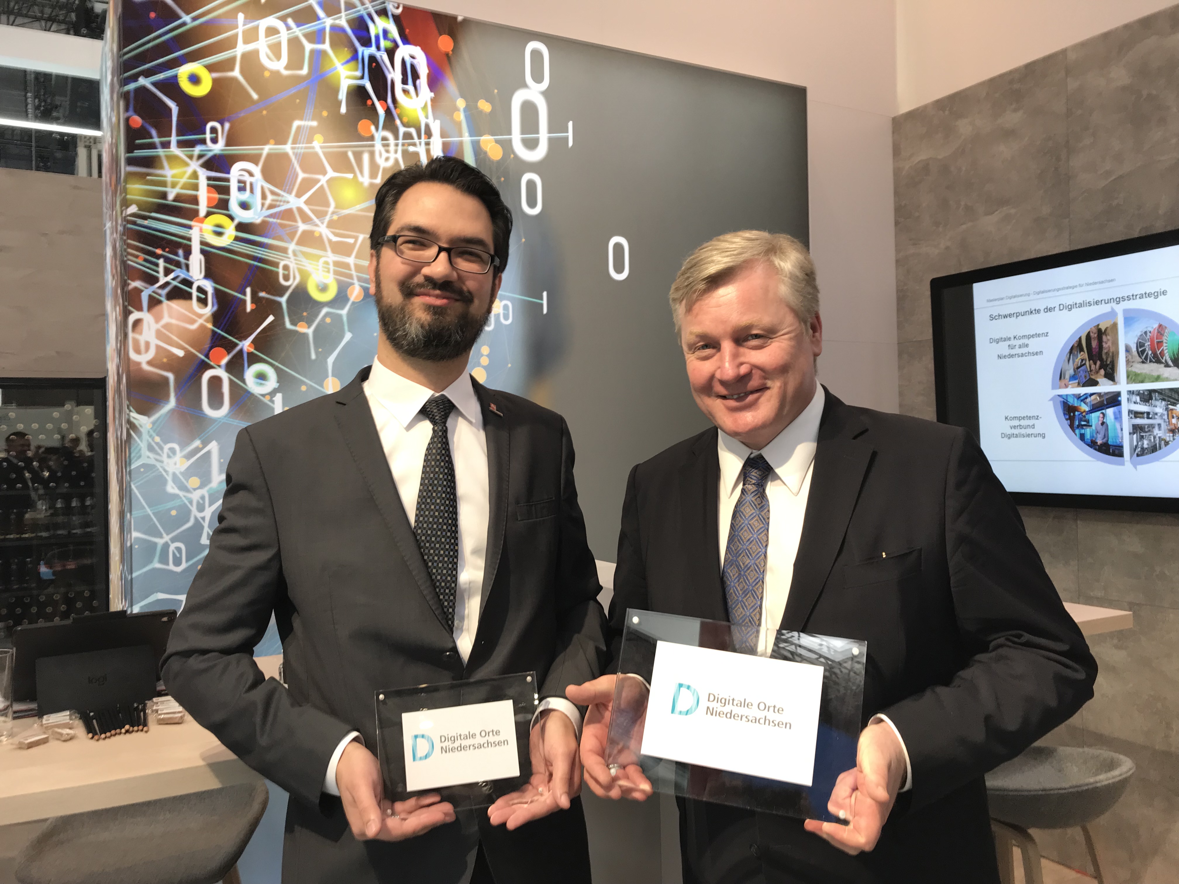 Damit die vielen unterschiedlichen digitalen Initiativen in Niedersachsen öffentlich stärker wahrgenommen werden, hat Niedersachsens Wirtschafts- und Digitalisierungsministerium die Initiative „Digitale Orte Niedersachsen“ ins Leben gerufen. Das hat Minister Dr. Bernd Althusmann während seines Rundgangs auf der Hannover Messe bekannt gegeben. Die Auszeichnung soll zukünftig die Einrichtungen als digitalen Ort ausweisen, die sich durch ihr Engagement besonders für das Gelingen der Digitalisierung in Niedersachsen verdient machen.
