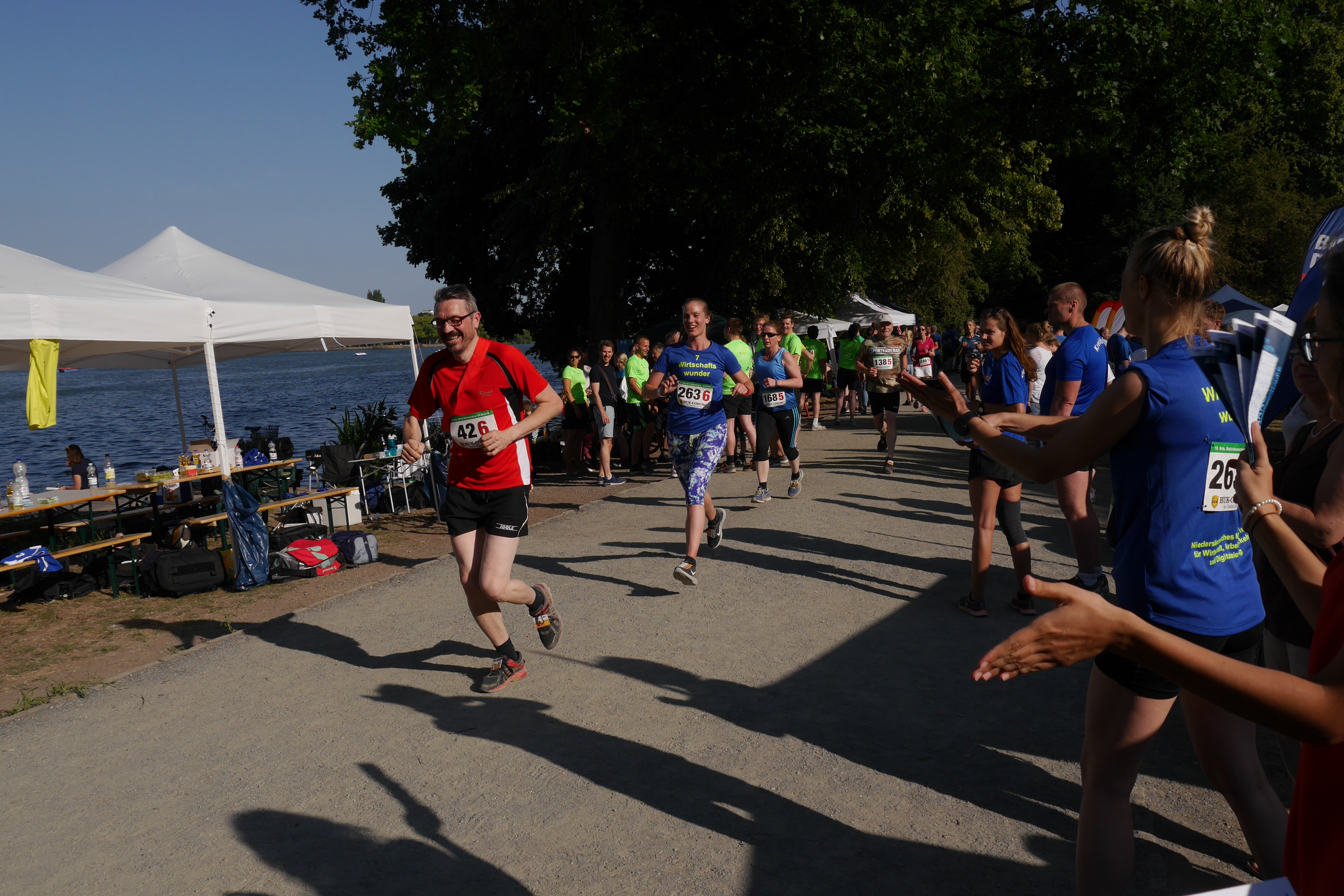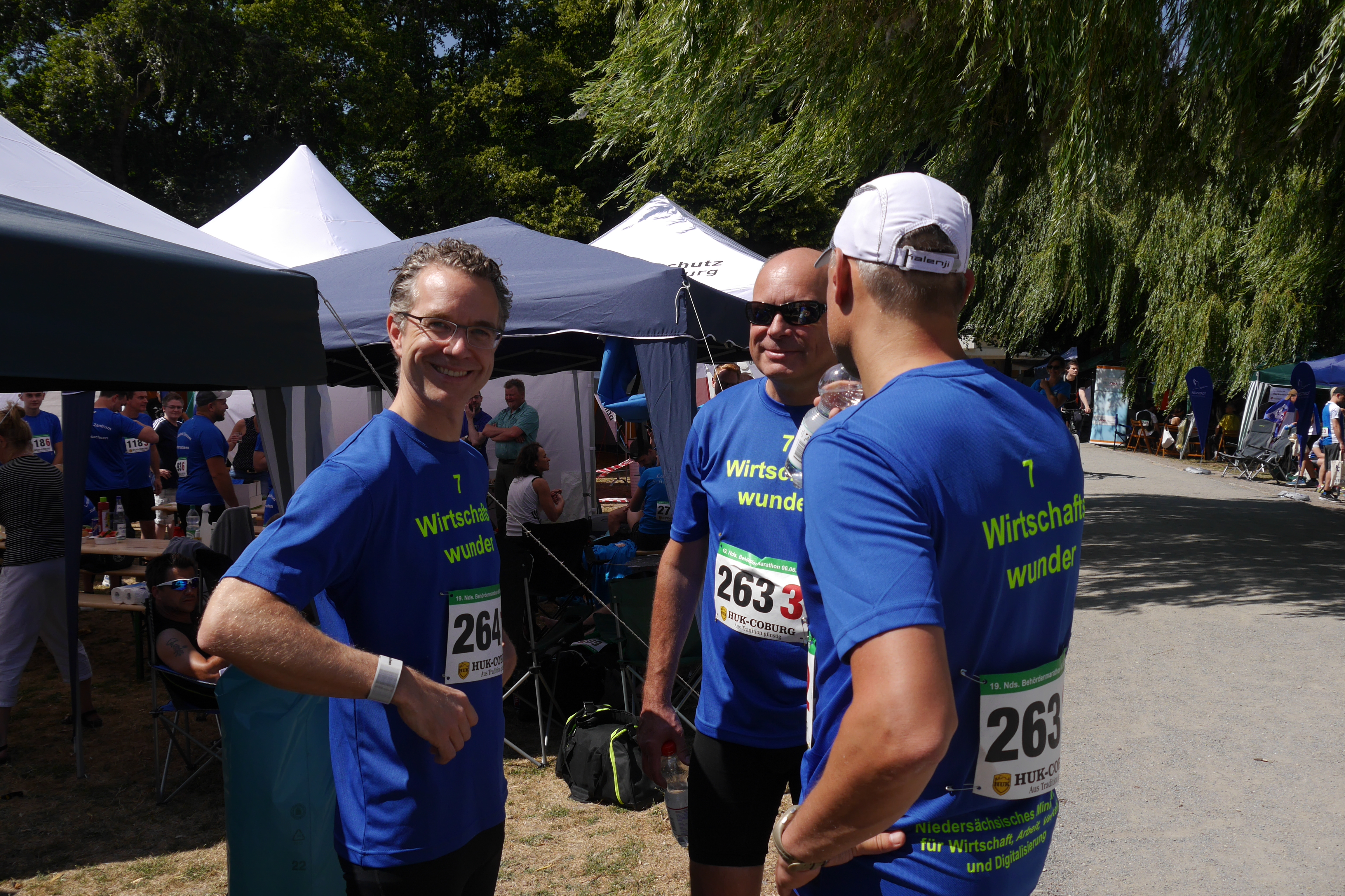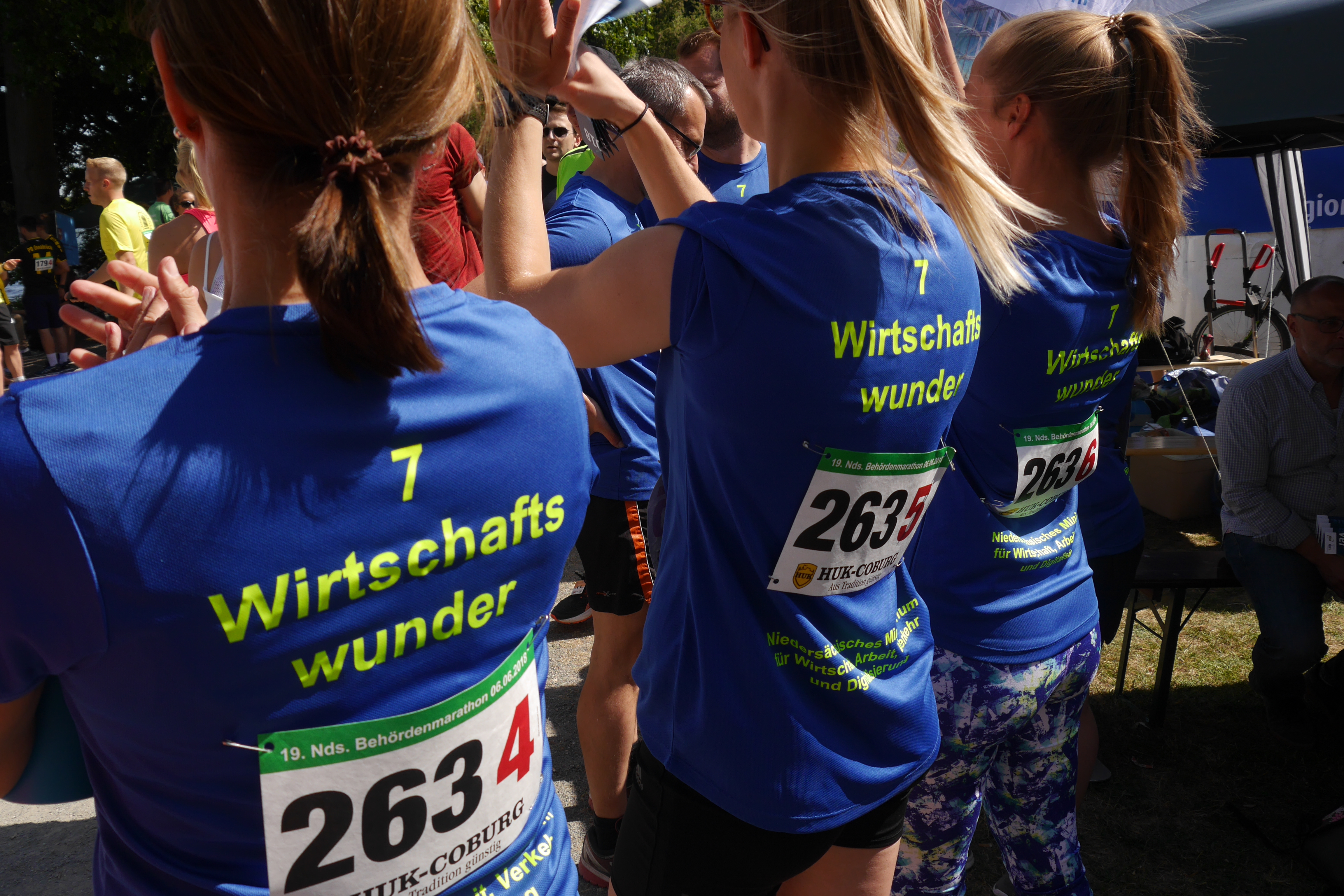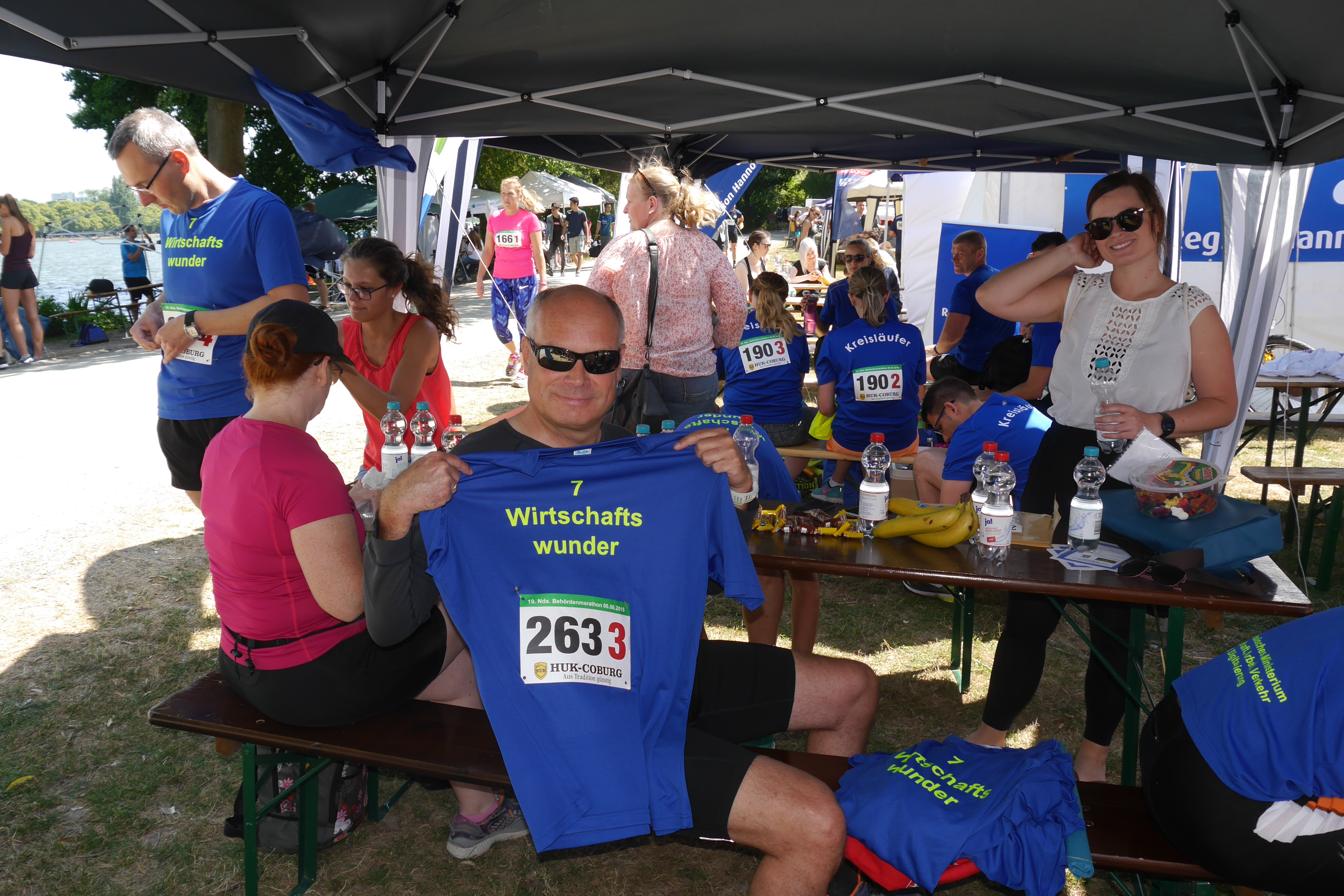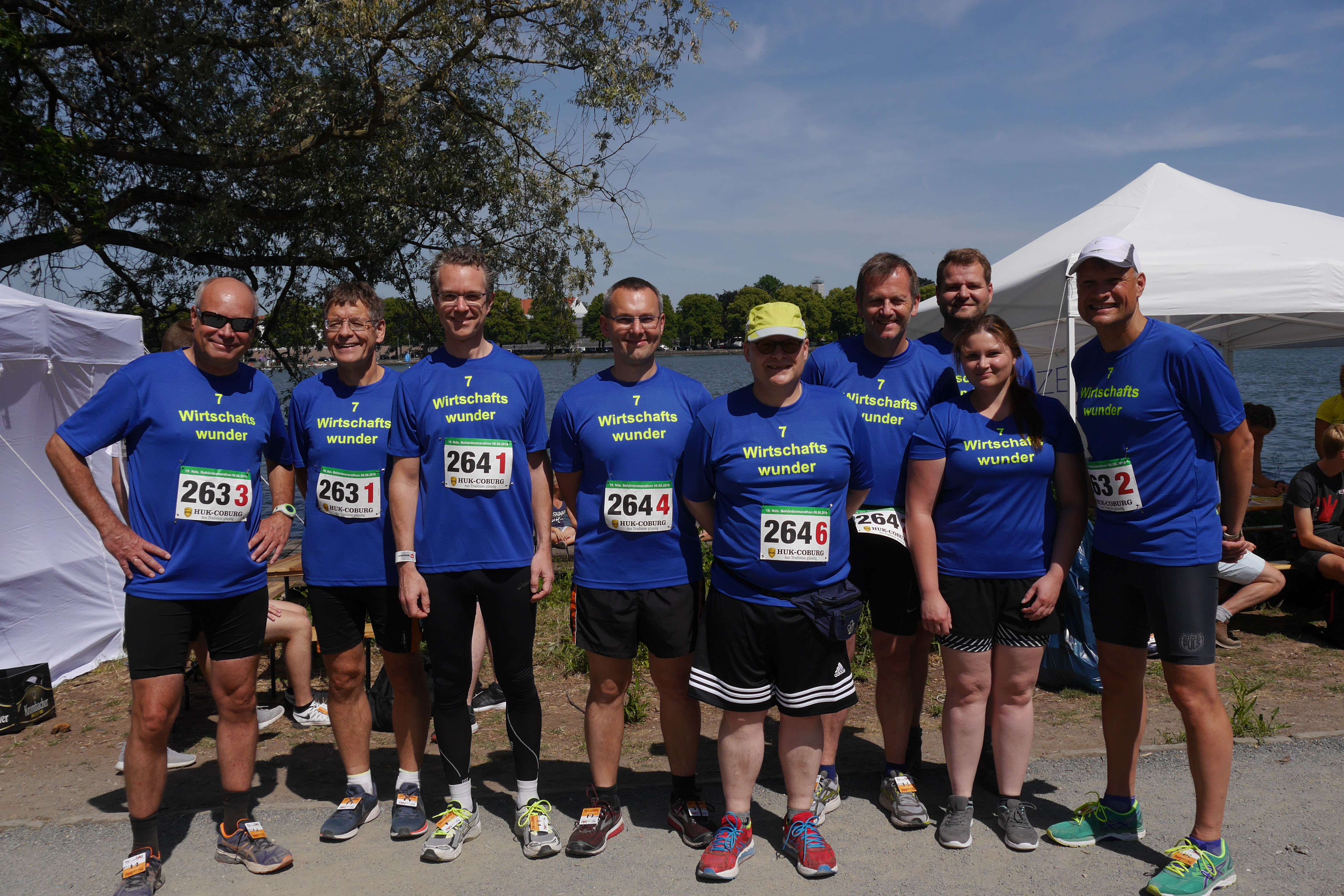 Am diesjährigen Behördenmarathon war das Niedersächsische Ministerium für Wirtschaft, Arbeit, Verkehr und Digitalisierung mit zwei Staffeln vertreten. Insgesamt 14 Läuferinnen und Läufer aus dem Ministerium liefen für die "7 Wirtschaftswunder" um den Maschsee.